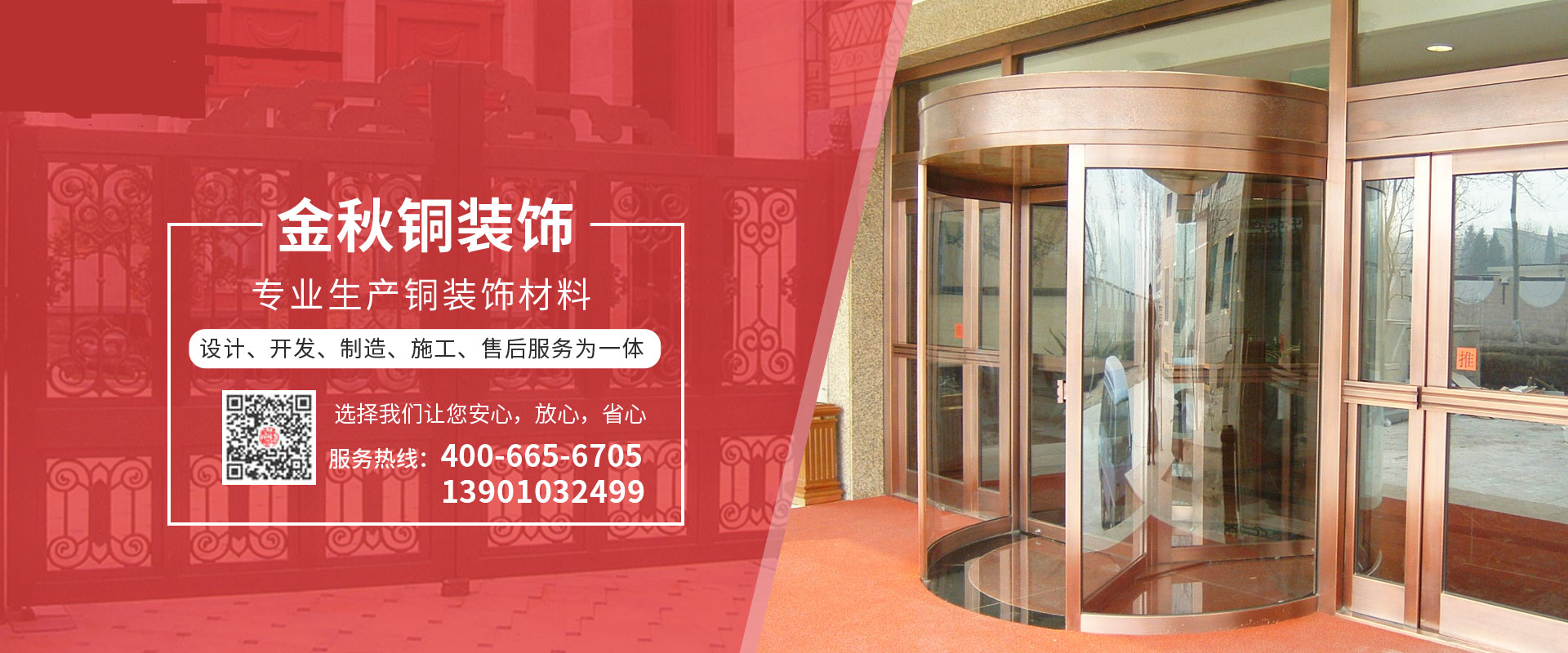 北京金秋銅裝飾材料有限公司是專業(yè)生產(chǎn)銅裝飾材料及設(shè)計(jì)、開(kāi)發(fā)、制造、施工、售后服務(wù)為一體的大型綜合企業(yè)??沙薪咏ㄖ~裝飾工程及五星級(jí)酒店、別墅、博物館、樓樘管所等高檔銅裝飾項(xiàng)目;生產(chǎn)各種規(guī)格的旋轉(zhuǎn)門、平滑門、別墅門、電控門、工藝門、旋轉(zhuǎn)護(hù)欄、屋頂銅飾防水瓦、浮雕壁畫(huà)......